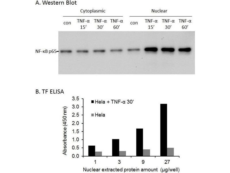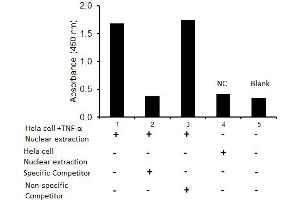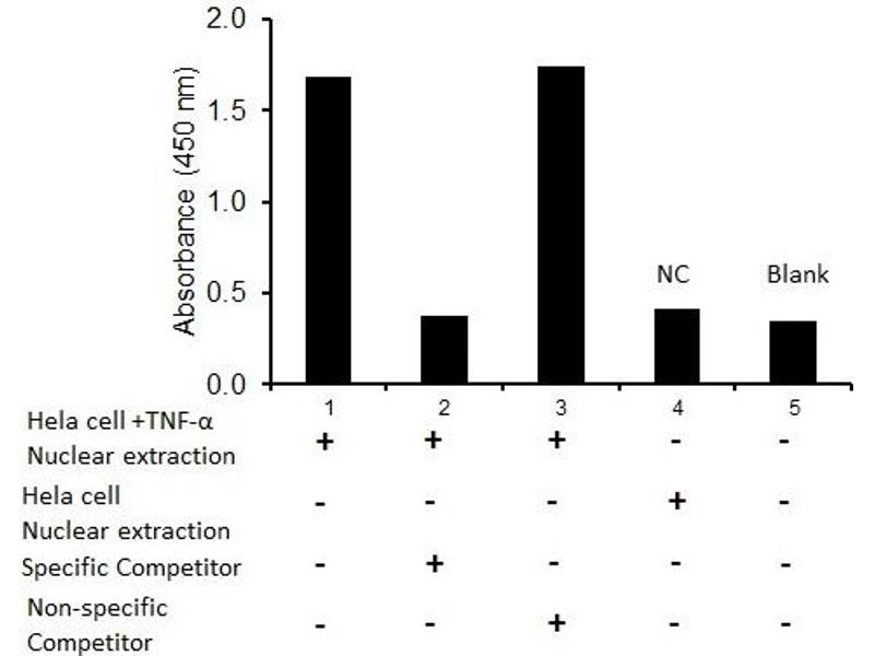 - The olionucleotide/antibody pair provided in this kit recognizes human NF-κB p65 in whole lysates and nuclear extracts.