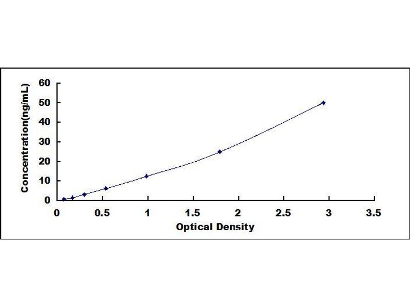 - Standard - Reconstitute the Standard with 1.0 mL of Standard Diluent, keep for 10 minutes at room temperature, shake gently (not to foam). The concentration of the standard in the stock solution is 100ng/mL. Please firstly dilute the stock solution to 50ng/mL and the diluted standard serves as the highest standard (50ng/mL). Prepare 7 tubes containing 0.5 mL Standard Diluent and produce a double dilution series by transferring 500 µL each. Mix each tube thoroughly before the next transfer. Set up 7 points of diluted standard such as 50ng/mL, 25ng/mL, 12.5ng/mL, 6.25ng/mL, 3.12ng/mL, 1.56ng/mL, 0.78ng/mL, and the last microcentrifuge tube with Standard Diluent is the blank as 0ng/mL.