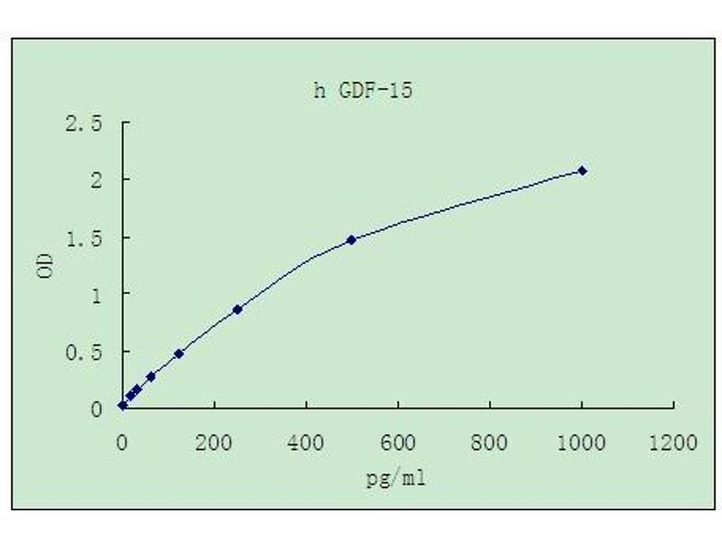 - Growth and differentiation factor-15 (GDF-15), also known as macrophage inhibitory cytokine-1(MIC-1), placental transforming growth factor-β, prostate-derived factor, and placental bone morphogenetic protein, is a divergent member of the transforming growth factor beta (TGF-β) superfamily (1 - 3). GDF-15 is initially synthesized as a 40 kDa inactive precursor protein. It is then proteolytically cleaved to release the active C-terminal fragment, which is assembled into a disulfide-linked homodimer of 28 kDa to become biologically active GDF-15 (1, 4). In humans, GDF-15 is predominantly expressed in the placenta, with low levels in the kidney, pancreas, and prostate. However, its expression can be rapidly induced by cytokines such as interleukin-1 and TGF-β (1 - 3).GDF-15 has diverse biological functions. Early studies have shown that low serum GDF-15 levels correlate with miscarriages, indicating that it might be able to suppress inflammation in early pregnancy (5, 6). GDF-15 also plays an important role in tumorigenesis and metastasis. It has been observed that in many types of cancers, such as colorectal, breast, and prostate, the expression of GDF-15 is dramatically increased (7 - 9). Additionally, in cancer patients, serum levels of GDF-15 are elevated, which are of value in disease diagnosis and stratification (10 -12). GDF-15 is strongly induced by the tumor suppressor gene p53 and other anti-tumorigenic agents, such as the non-steroidal anti-inflammatory drugs and peroxisome proliferators-activated receptor γ. These findings suggest that GDF-15 may be a downstream target of those signaling pathways that regulate cell cycle arrest and apoptosis (13 - 15). Through the modulation of neuronal pathways important in the regulation of appetite and energy homeostasis, GDF-15 mediates cancer-induced anorexia and weight loss (16).