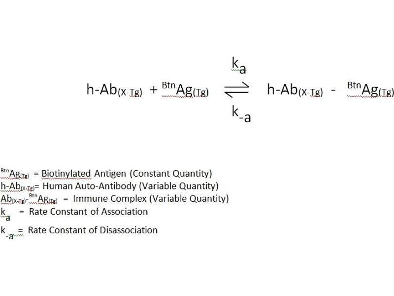 - Antibodies to thyroid peroxidase have been shown to be characteristically present from patients with Hashimoto thyroiditis (95%), idiopathic myedema (90%) and Graves Disease (80%) 1. In fact 72% of patients positive for anti-TPO exhibit some degree of thyroid dysfunction2. This has lead to the clinical measurement becoming a valuable tool in the diagnosis of thyroid dysfunction. Measurements of antibodies to TPO have been done, in the past, by Passive Hemaglutination (PHA). PHA tests do not have the sensitivity of chemiluminescence immunoassay and are limited by subjective interpretation. This procedure, with the enhanced sensitivity of CLIA, permits the detectability of subclinical levels of antibodies to TPO. In addition, the results are quantitated by a luminometer, which eliminates subjective interpretation. Monobind's microplate chemiluminescence immunoassay methodology provides the technician with optimum sensitivity while requiring few technical manipulations. In this method, serum reference, diluted patient specimen, or control is first added to a microplate well. Biotinylated Thyroid Peroxidase Antigen (TPO) is added, and then the reactants are mixed. Reaction results between the autoantibodies to TPO and the biotinylated TPO to form an immune complex, which is deposited to the surface of streptavidin coated wells through the high affinity reaction of biotin and streptavidin. After the completion of the required incubation period, aspiration or decantation separates the reactants that are not attached to the wells. An enzyme anti-human IgG conjugate is then added to permit quantitation of reaction through interacting with human IgG of the immune complex. After washing, the enzyme activity is determined by reaction with substrate to produce light. The employment of several serum references of known antibody activity permits construction of a graph of enzyme and antibody activities. From comparison to the dose response curve, an unknown specimen's enzyme activity can be correlated with auto-immune antibody level.