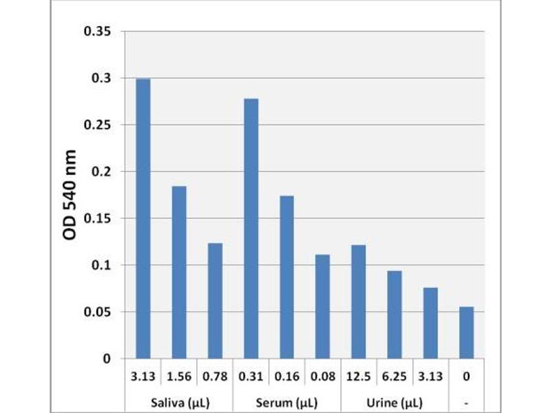 - Serum, plasma, saliva, or urine: To remove insoluble particles, centrifuge at 10,000 rpm for 5 min. The supernatant may be assayed directly or diluted as necessary in 1X Assay Buffer. Notes:
