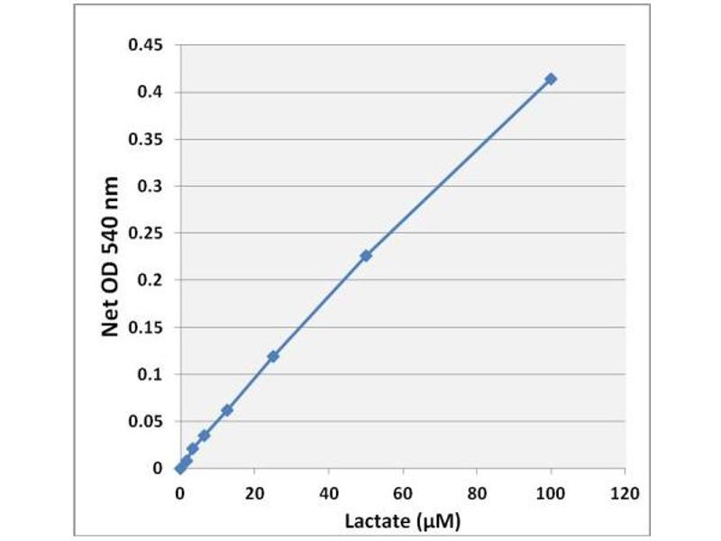 - Lactate Assay Kit (Colorimetric) is a simple colorimetric assay that measures the amount of total lactate present in biological samples in a 96-well microtiter plate format. Each kit provides sufficient reagents to perform up to 100 assays, including blanks, lactate standards and unknown samples. Sample lactate concentrations are determined by comparison with a known lactate standard. The kit has a detection sensitivity limit of 1.5 μM L-Lactate.