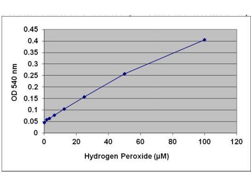 - Plot the corrected absorbance for the H2O2 standards against the final concentration of the hydrogen peroxide standards from Table 2 to determine the best slope (μM-1). See Figure 1 for an example standard curve.