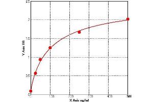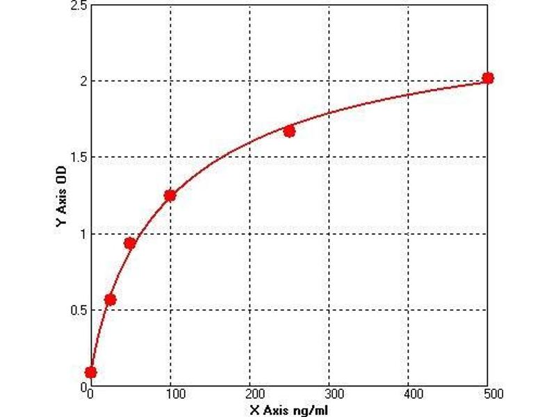 Prepare all Standards before starting assay procedure (Please read Reagents Preparation). It is recommended that all Standards and Samples be added in duplicate to the Microtiter Plate. 1. Secure the desired number of coated wells in the holder then add 50 µL of Standards or Samples to the appropriate well of the antibody pre-coated Microtiter Plate. 2. Add 50 μL of Conjugate to each well. Mix well. Complete mixing in this step is important. Cover and incubate for 1 hour at 37 °C. 3. Wash the Microtiter Plate using one of the specified methods indicated below: 4. Manual Washing: Remove incubation mixture by aspirating contents of the plate into a sink or proper waste container. Using a squirt bottle, fill each well completely with wash solution, then aspirate contents of the plate into a sink or proper waste container. Repeat this procedure four more times for a total of FIVE washes. After final wash, invert plate, and blot dry by hitting plate onto absorbent paper or paper towels until no moisture appears. Note: Hold the sides of the plate frame firmly hen washing the plate to assure that all strips remain securely in frame. 5. Automated Washing: Aspirate all wells, and then wash plate FIVE times using wash solution. Always adjust your washer to aspirate as much liquid as possible and set fill volume at 350 µL/well/wash (range: 350-400 µL). After final wash, invert plate, and blot dry by hitting plate onto absorbent paper or paper towels until no moisture appears. It is recommended that the washer be set for a soaking time of 10 seconds or shaking time of 5 seconds between washes. 6. Add 50 µL Substrate A to each well. 7.Add 50 µL Substrate B to each well. Cover and incubate for 15 minutes at 20-25 °C. (avoid sunlight) 8. Add 50 µL of Stop Solution to each well. Mix well. 9. Read the Optical Density (O.D.) at 450 nm using a microtiter plate reader immediately.