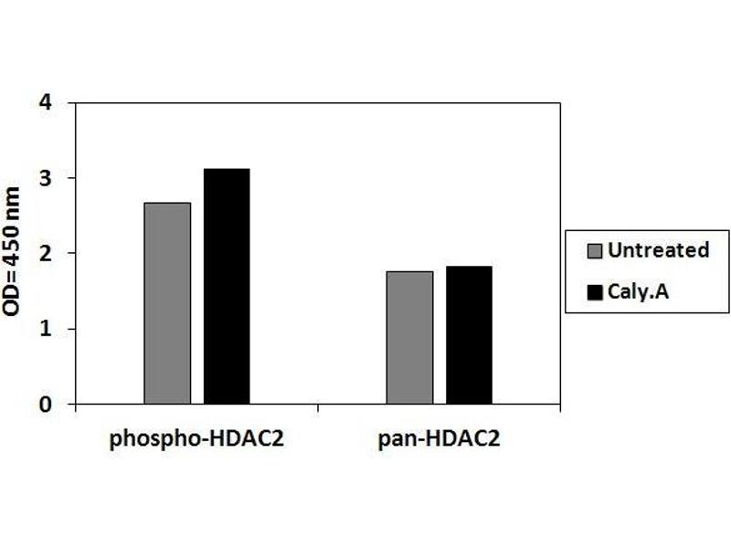 Human, Mouse and Rat Phospho-HDAC2 (Ser394) ELISA Kit. This assay semi-quantitatively measures HDAC2 phosphorylated at Serine-394 in cell lysate samples.