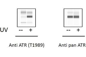 Human Phospho-ATR (Thr1989) ELISA Kit. This assay semi-quantitatively measures ATR phosphorylated at Threonnine-1989 in cell lysate samples.
