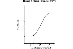 To generate a standard curve, plot the graph using the standard concentrations on the x-axis and the corresponding mean 450 nm absorbance (OD) on the y-axis. The best-fit line can be determined by regression analysis using log-log or four-parameter logistic curve-fit.