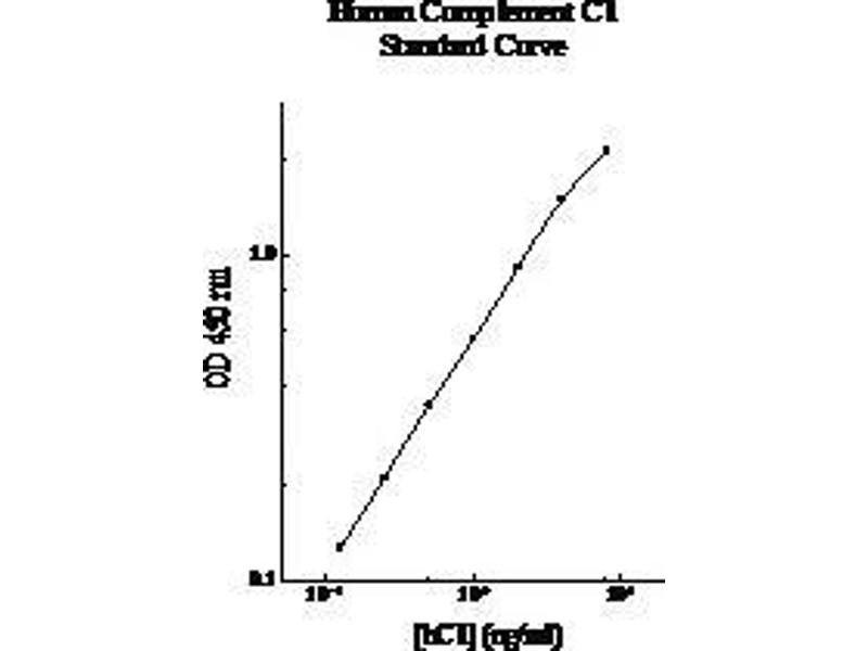 Prepare all reagents, standard solutions, and samples as instructed. Bring all reagents to room temperature before use. The assay is performed at room temperature (20-25 °C). Remove excess microplate strips from the plate frame and return them immediately to the foil pouch with desiccants inside. Reseal the pouch securely to minimize exposure to water vapor and store in a vacuum desiccator. Add 50 l of Human Complement C1 Standard or sample per well. Cover wells with a sealing tape and incubate for 2 hours. Start the timer after the last addition. Wash five times with 200 l of Wash Buffer manually. Invert the plate each time and decant the contents, hit 4-5 times on absorbent material to completely remove the liquid. If using a machine, wash six times with 300 l of Wash Buffer and then invert the plate, decanting the contents, hit 4-5 times on absorbent material to completely remove the liquid. Add 50 l of Biotinylated Human Complement C1 Antibody to each well and incubate for 1 hour. Wash the microplate as described above. Add 50 l of Streptavidin-Peroxidase Conjugate per well and incubate for 30 minutes. Turn on the microplate reader and set up the program in advance. Wash the microplate as described above. Add 50 l of Chromogen Substrate per well and incubate for 12 minutes or till the optimal blue color density develops. Gently tap the plate to ensure thorough mixing and break the bubbles in the well with pipette tip. Add 50 l of Stop Solution to each well. The color will change from blue to yellow. Read the absorbance on a microplate reader at a wavelength of 450 nm immediately. If wavelength correction is available, subtract readings at 570 nm from those at 450 nm to correct optical imperfections. Otherwise, read the plate at 450 nm only. Please note that some unstable black particles may be generated at high concentration points after stopping the reaction for about 10 minutes, which will reduce the readings.