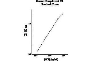 - Human Complement C1 Microplate: A 96-well polystyrene microplate (12 strips of 8 wells) coated with a polyclonal antibody against human C1. Sealing Tapes: Each kit contains 3 precut, pressure sensitive sealing tapes that can be cut to fit the format of the individual assay. Human Complement C1 Standard: Human Complement C1 in a buffered protein base (256 ng, lyophilized). Biotinylated Human Complement C1 Antibody (100x): A 100-fold biotinylated polyclonal antibody against human complement C1 (80 l). MIX Diluent Concentrate (10x): A 10-fold concentrated buffered protein base (30 ml). Wash Buffer Concentrate (20x): A 20-fold concentrated buffered surfactant (30 ml, 2 bottles). Streptavidin-Peroxidase Conjugate (SP Conjugate): A 100-fold concentrate (80 l). Chromogen Substrate: A ready-to-use stabilized peroxidase chromogen substrate tetramethylbenzidine (8 ml). Stop Solution: A 0.5 N hydrochloric acid to stop the chromogen substrate reaction (12 ml).