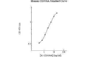 Prepare all reagents, standard solutions, and samples as instructed. Bring all reagents to room temperature before use. The assay is performed at room temperature (20-25 °C). Remove excess microplate strips from the plate frame and return them immediately to the foil pouch with desiccants inside. Reseal the pouch securely to minimize exposure to water vapor and store in a vacuum desiccator. Add 50 l of Human CD300A Standard or sample to each well. Gently tap plate to thoroughly coat the wells. Break any bubbles that may have formed. Cover wells with a sealing tape and incubate for 2 hours. Start the timer after the last addition. Wash five times with 200 l of Wash Buffer manually. Invert the plate each time and decant the contents, hit 4-5 times on absorbent material to completely remove the liquid. If using a machine, wash six times with 300 l of Wash Buffer and then invert the plate, decanting the contents, hit 4-5 times on absorbent material to completely remove the liquid. Add 50 l of Biotinylated Human CD300A Antibody to each well. Gently tap plate to thoroughly coat the wells. Break any bubbles that may have formed. Cover wells with a sealing tape and incubate for 1 hour. Wash the microplate as described above. Add 50 l of SP Conjugate to each well. Gently tap plate to thoroughly coat the wells. Break any bubbles that may have formed. Cover wells with a sealing tape and incubate for 30 minutes. Turn on the microplate reader and set up the program in advance. Wash the microplate as described above. Add 50 l of Chromogen Substrate to each well. Gently tap plate to thoroughly coat the wells. Break any bubbles that may have formed. Incubate for 15 minutes or until the optimal blue color density develops. Add 50 l of Stop Solution to each well. The color will change from blue to yellow. Gently tap plate to ensure thorough mixing. Break any bubbles that may have formed. Read the absorbance on a microplate reader at a wavelength of 450 nm immediately. If wavelength correction is available, subtract readings at 570 nm from those at 450 nm to correct optical imperfections. Otherwise, read the plate at 450 nm only. Please note that some unstable black particles may be generated at high concentration points after stopping the reaction for about 10 minutes, which will reduce the readings. 6