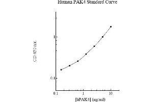 - The AssayMax™ Human p21-Activated Kinase 4 Isoform 1 (PAK4) ELISA (Enzyme- Linked Immunosorbent Assay) kit is designed for detection of human PAK4 in plasma, serum, and cell culture samples. This assay employs a quantitative sandwich enzyme immunoassay technique that measures human PAK4 in less than 5 hours. A polyclonal antibody specific for human PAK4 has been pre- coated onto a 96-well microplate with removable strips. PAK4 in standards and samples is sandwiched by the immobilized antibody and the biotinylated polyclonal antibody specific for PAK4, which is recognized by a streptavidin- peroxidase conjugate. All unbound material is washed away and a peroxidase enzyme substrate is added. The color development is stopped and the intensity of the color is measured.