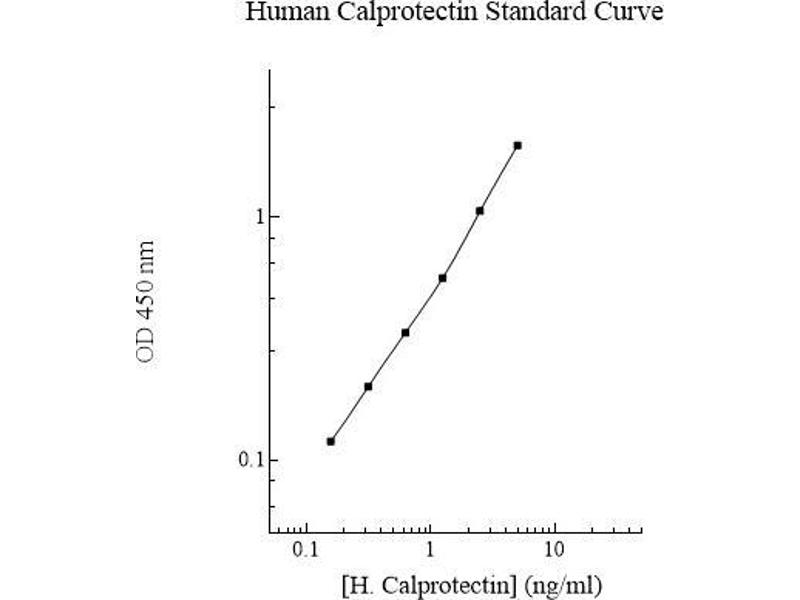 - Human Calprotectin Microplate: A 96-well polystyrene microplate (12 strips of 8 wells) coated with a polyclonal antibody against human calprotectin. Sealing Tapes: Each kit contains 3 precut, pressure sensitive sealing tapes that can be cut to fit the format of the individual assay. Human Calprotectin Standard: Human calprotectin in a buffered protein base (5 ng, lyophilized). Biotinylated Human Calprotectin Antibody (50x): A 50-fold concentrated biotinylated polyclonal antibody against human calprotectin (120 l). MIX Diluent Concentrate (10x): A 10-fold concentrated buffered protein base (30 ml). Wash Buffer Concentrate (20x): A 20-fold concentrated buffered surfactant (30 ml, 2 bottles). SP Conjugate (100x): A 100-fold concentrate (80 l). Chromogen Substrate (1x): A stabilized peroxidase chromogen substrate tetramethylbenzidine (8 ml). Stop Solution (1x): A 0.5 N hydrochloric acid solution to stop the chromogen substrate reaction (12 ml).