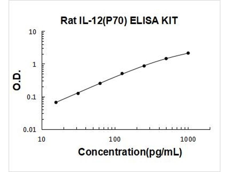 Background: Interleukin (IL)-12 is a 70-KDa cytokine comprised of two disulfide-linked proteins (p35 and p40) and is essential for the initiation of effective immune response. And the IL-12p70 is a heterodimer of p35 and p40 subunits, it is an important cytokine secreted by antigen-presenting cells in response to antigenic stimulation. Gene expression analysis of the IL-12 cytokine family subunits revealed that both strains induced high levels of p40 (protein chain communal to IL-12 p70 and IL-23) as well as p19, a subunit of IL-23. Conversely only ACT- 18HS19 infection induced consistent transcription of IL-12 p35, a subunit of IL-12 p70. The standard product used in this kit is recombinant rat IL-12 p70 comprising of a 193 amino acids p35 chain and a 313 amino acids p40 chain connected by a disulfide bond.