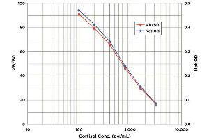 The Cortisol EIA kit is designed to quantitatively measure cortisol present in dried fecal extracts, saliva, urine, serum, plasma and tissue culture media samples. This kit measures total cortisol in extracted samples and in serum and plasma and free cortisol in saliva and urine. A cortisol standard is provided to generate a standard curve for the assay and all samples should be read off the standard curve. Standards or diluted samples are pipetted into a clear microtiter plate coated with an antibody to capture mouse antibodies. A cortisol-peroxidase conjugate is added to the standards and samples in the wells. The binding reaction is initiated by the addition of a monoclonal antibody to cortisol to each well. After an 1 hour incubation the plate is washed and substrate is added. The substrate reacts with the bound cortisol-peroxidase conjugate. After a short incubation, the reaction is stopped and the intensity of the generated color is detected in a microtiter plate reader capable of measuring 450 nm wavelength. The concentration of the cortisol in the sample is calculated, after making suitable correction for the dilution of the sample, using software available with most plate readers.