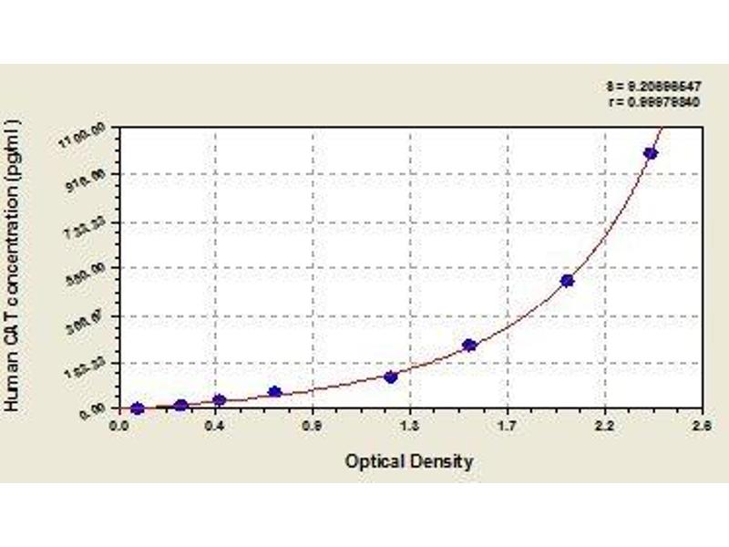 - This assay employs the quantitative sandwich enzyme immunoassay technique. Antibody specific for CAT has been pre-coated onto a microplate. Standards and samples are pipetted into the wells and any CAT present is bound by the immobilized antibody. After removing any unbound substances, a biotin-conjugated antibody specific for CAT is added to the wells. After washing, avidin conjugated Horseradish Peroxidase (HRP) is added to the wells. Following a wash to remove any unbound avidin-enzyme reagent, a substrate solution is added to the wells and color develops in proportion to the amount of CAT bound in the initial step. The color development is stopped and the intensity of the color is measured.