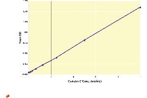 A human Cystatin C standard is provided to generate a standard curve for the assay and all samples should be read off the standard curve.