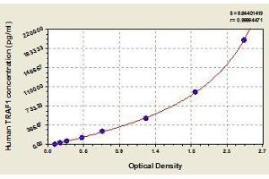 - This assay employs the quantitative sandwich enzyme immunoassay technique. Antibody specific for TRAF1 has been pre-coated onto a microplate. Standards and samples are pipetted into the wells and any TRAF1 present is bound by the immobilized antibody. After removing any unbound substances, a biotin-conjugated antibody specific for TRAF1 is added to the wells. After washing, avidin conjugated Horseradish Peroxidase (HRP) is added to the wells. Following a wash to remove any unbound avidin-enzyme reagent, a substrate solution is added to the wells and color develops in proportion to the amount of TRAF1 bound in the initial step. The color development is stopped and the intensity of the color is measured.