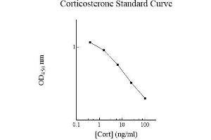 - A polyclonal antibody specific for Corticosterone has been pre-coated onto a 96-well microplate with removable strips. Corticosterone in standards and samples is competed by a biotinylated Corticosterone sandwiched by the immobilized antibody and streptavidin-peroxidase conjugate. All unbound material is then washed away and a peroxidase enzyme substrate is added. The color development is stopped and the intensity of the color is measured.