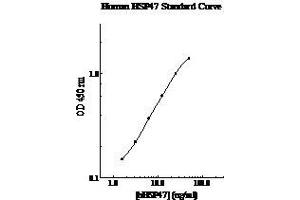 - This assay employs a quantitative sandwich enzyme immunoassay technique that measures human Hsp47 in less than 5 hours. A polyclonal antibody specific for human Hsp47 has been pre-coated onto a 96-well microplate with removable strips. Hsp47 in standards and samples is sandwiched by the immobilized antibody and biotinylated polyclonal antibody specific for Hsp47, which is recognized by a streptavidin-peroxidase conjugate. All unbound material is then washed away and a peroxidase enzyme substrate is added. The color development is stopped and the intensity of the color is measured.