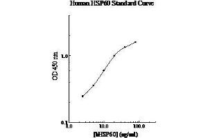 - The AssayMax Human Heat Shock Protein 60 (HSP60) ELISA (Enzyme-Linked Immunosorbent Assay) kit is designed for detection of human HSP60 in plasma, serum, cell culture lysates, and tissue samples. This assay employs a quantitative sandwich enzyme immunoassay technique that measures human HSP60 in less than 5 hours. A polyclonal antibody specific for human HSP60 has been pre-coated onto a 96-well microplate with removable strips. HSP60 in standards and samples is sandwiched by the immobilized antibody and biotinylated polyclonal antibody specific for HSP60, which is recognized by a streptavidin-peroxidase conjugate. All unbound material is washed away and a peroxidase enzyme substrate is added. The color development is stopped and the intensity of the color is measured.