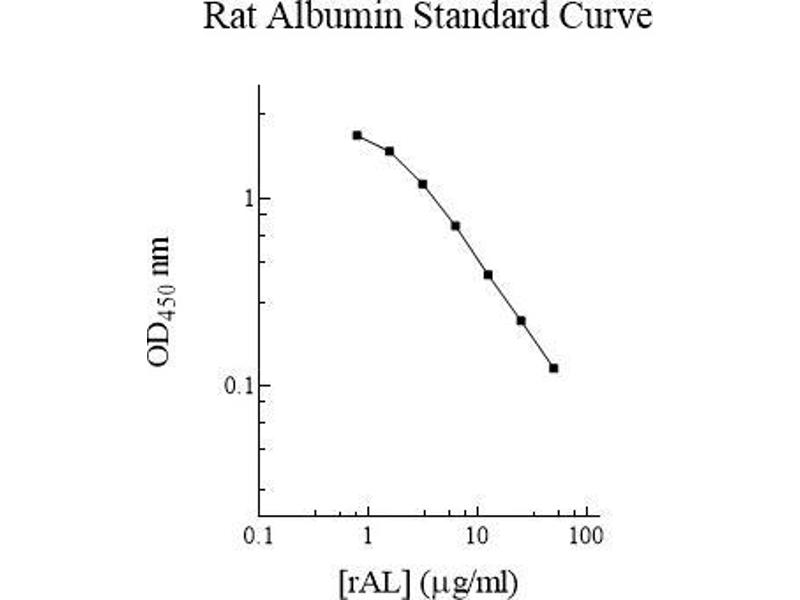 - A polyclonal antibody specific for rat albumin has been pre-coated onto a 96-well microplate with removable strips. Albumin in standards and samples is competed with a biotinylated Albumin sandwiched by the immobilized antibody and streptavidin- peroxidase conjugate. All unbound material is then washed away and a peroxidase enzyme substrate is added. The color development is stopped and the intensity of the color is measured.