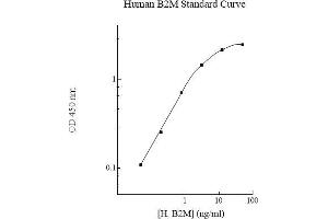 Prepare all reagents, standard solutions, and samples as instructed. Bring all reagents to room temperature before use. The assay is performed at room temperature (20-25 °C). Remove excess microplate strips from the plate frame and return them immediately to the foil pouch with desiccants inside. Reseal the pouch securely to minimize exposure to water vapor and store in a vacuum desiccator. Add 50 l of Human beta-2-Microglobulin Standard or sample to each well. Gently tap plate to thoroughly coat the wells. Break any bubbles that may have formed. Cover wells with a sealing tape and incubate for 2 hours. Start the timer after the last addition. Wash five times with 200 l of Wash Buffer manually. Invert the plate each time and decant the contents, hit 4-5 times on absorbent material to completely remove the liquid. If using a machine, wash six times with 300 l of Wash Buffer and then invert the plate, decanting the contents, hit 4-5 times on absorbent material to completely remove the liquid. Add 50 l of Biotinylated Human beta-2-Microglobulin Antibody to each well. Gently tap plate to thoroughly coat the wells. Break any bubbles that may have formed. Cover wells with a sealing tape and incubate for 1 hour. Wash the microplate as described above. Add 50 l of SP Conjugate to each well. Gently tap plate to thoroughly coat the wells. Break any bubbles that may have formed. Cover wells with a sealing tape and incubate for 30 minutes. Turn on the microplate reader and set up the program in advance. Wash the microplate as described above. Add 50 l of Chromogen Substrate to each well. Gently tap plate to thoroughly coat the wells. Break any bubbles that may have formed. Incubate for 10 minutes or until the optimal blue color density develops. 6 Add 50 l of Stop Solution to each well. The color will change from blue to yellow. Gently tap plate to ensure thorough mixing. Break any bubbles that may have formed. Read the absorbance on a microplate reader at a wavelength of 450 nm immediately. If wavelength correction is available, subtract readings at 570 nm from those at 450 nm to correct optical imperfections. Otherwise, read the plate at 450 nm only. Please note that some unstable black particles may be generated at high concentration points after stopping the reaction for about 10 minutes, which will reduce the readings.