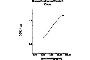 Prepare all reagents, standard solutions, and samples as instructed. Bring all reagents to room temperature before use. The assay is performed at room temperature (20-25 °C). Remove excess microplate strips from the plate frame and return them immediately to the foil pouch with desiccants inside. Reseal the pouch securely to minimize exposure to water vapor and store in a vacuum desiccator. Add 50 l of Human Prealbumin Standard or sample per well. Gently tap plate to thoroughly coat the wells. Break any bubbles that may have formed. Cover wells with a sealing tape and incubate for 2 hours. Start the timer after the last addition. Wash five times with 200 l of Wash Buffer manually. Invert the plate each time and decant the contents, hit 4-5 times on absorbent material to completely remove the liquid. If using a machine, wash six times with 300 l of Wash Buffer and then invert the plate, decanting the contents, hit 4-5 times on absorbent material to completely remove the liquid. Add 50 l of Biotinylated Human Prealbumin Antibody to each well. Gently tap plate to thoroughly coat the wells. Break any bubbles that may have formed. Cover wells with a sealing tape and incubate for 1 hour. Wash the microplate as described above. Add 50 l of Streptavidin-Peroxidase Conjugate per well. Gently tap plate to thoroughly coat the wells. Break any bubbles that may have formed. Cover wells with a sealing tape and incubate for 30 minutes. Turn on the microplate reader and set up the program in advance. Wash the microplate as described above. Add 50 l of Chromogen Substrate per well. Gently tap plate to thoroughly coat the wells. Break any bubbles that may have formed. Incubate for 30 minutes or till the optimal blue color density develops. Add 50 l of Stop Solution to each well. The color will change from blue to yellow. Gently tap plate to ensure thorough mixing. Break any bubbles that may have formed. 6 Read the absorbance on a microplate reader at a wavelength of 450 nm immediately. If wavelength correction is available, subtract readings at 570 nm from those at 450 nm to correct optical imperfections. Otherwise, read the plate at 450 nm only. Please note that some unstable black particles may be generated at high concentration points after stopping the reaction for about 10 minutes, which will reduce the readings.