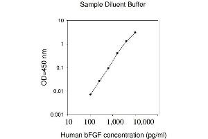 Typical Data: These standard curves are for demonstration only. A standard curve must be run with each assay. Sample Diluent Buffer Human bFGF concentration (pg/mL) O D =4 50 n m 0.001 0.01 0.1 1 10 10 100 1,000 10,000