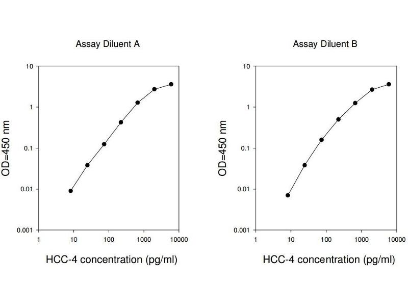 - The Human HCC-4 ELISA (Enzyme-Linked Immunosorbent Assay) kit is an in vitro enzyme-linked immunosorbent assay for the quantitative measurement of human HCC-4 in serum, plasma, cell culture supernatants and urine. This assay employs an antibody specific for human HCC-4 coated on a 96-well plate. Standards and samples are pipetted into the wells and HCC-4 present in a sample is bound to the wells by the immobilized antibody. The wells are washed and biotinylated anti-human HCC-4 antibody is added. After washing away unbound biotinylated antibody, HRP-conjugated streptavidin is pipetted to the wells. The wells are again washed, a TMB substrate solution is added to the wells and color develops in proportion to the amount of HCC-4 bound. The Stop Solution changes the color from blue to yellow, and the intensity of the color is measured at 450 nm. Reproducibility: Intra-Assay: CV<10% Inter-Assay: CV<12%.