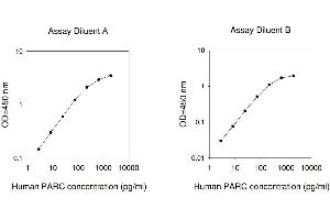 - PARC (Pulmonary and activation-regulated chemokine) belongs to the CC-Chemokines. PARC is referred to also as AMAC-1 (alternative activated macrophage associated CC-Chemokine), MIP-4 (macrophage inflammatory protein-4), or DC-CK1 (dendritic cell-derived chemokine-1). PARC is chemotactic for both activated CD3 (+) T-cells and non-activated CD14 (-) lymphocytes, but not for monocytes or granulocytes. The Human PARC ELISA (Enzyme-Linked Immunosorbent Assay) kit is an in vitro enzyme-linked immunosorbent assay for the quantitative measurement of human PARC in serum, plasma, cell culture supernatants and urine. This assay employs an antibody specific for human PARC coated on a 96-well plate. Standards and samples are pipetted into the wells and PARC present in a sample is bound to the wells by the immobilized antibody. The wells are washed and biotinylated anti-human PARC antibody is added. After washing away unbound biotinylated antibody, HRP-conjugated streptavidin is pipetted to the wells. The wells are again washed, a TMB substrate solution is added to the wells and color develops in proportion to the amount of PARC bound. The Stop Solution changes the color from blue to yellow, and the intensity of the color is measured at 450 nm. Reproducibility: Intra-Assay: CV<10% Inter-Assay: CV<12%.