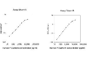 - The Human P-Cadherin ELISA (Enzyme-Linked Immunosorbent Assay) kit is an in vitro enzyme-linked immunosorbent assay for the quantitative measurement of human P-Cadherin in serum, plasma, cell culture supernatants and urine. This assay employs an antibody specific for human P-Cadherin coated on a 96-well plate. Standards and samples are pipetted into the wells and P-Cadherin present in a sample is bound to the wells by the immobilized antibody. The wells are washed and biotinylated anti-human P-Cadherin antibody is added. After washing away unbound biotinylated antibody, HRP-conjugated streptavidin is pipetted to the wells. The wells are again washed, a TMB substrate solution is added to the wells and color develops in proportion to the amount of P-Cadherin bound. The Stop Solution changes the color from blue to yellow, and the intensity of the color is measured at 450 nm. Reproducibility: Intra-Assay: CV<10% Inter-Assay: CV<12%.