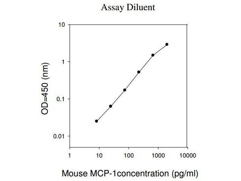 Typical Data: These standard curves are for demonstration only. A standard curve must be run with each assay. Assay Diluent Mouse MCP-1concentration (pg/mL) 1 10 100 1000 10000 O D =4 50 (n m ) 0.01 0.1 1 10