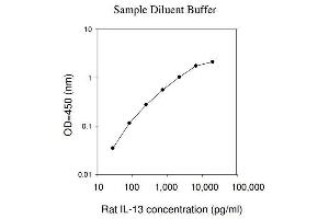 Typical Data: These standard curves are for demonstration only. A standard curve must be run with each assay. Sample Diluent Buffer Rat IL-13 concentration (pg/mL) O D =4 50 (n m ) 0.01 0.1 1 10 10 100 1,000 10,000 100,000
