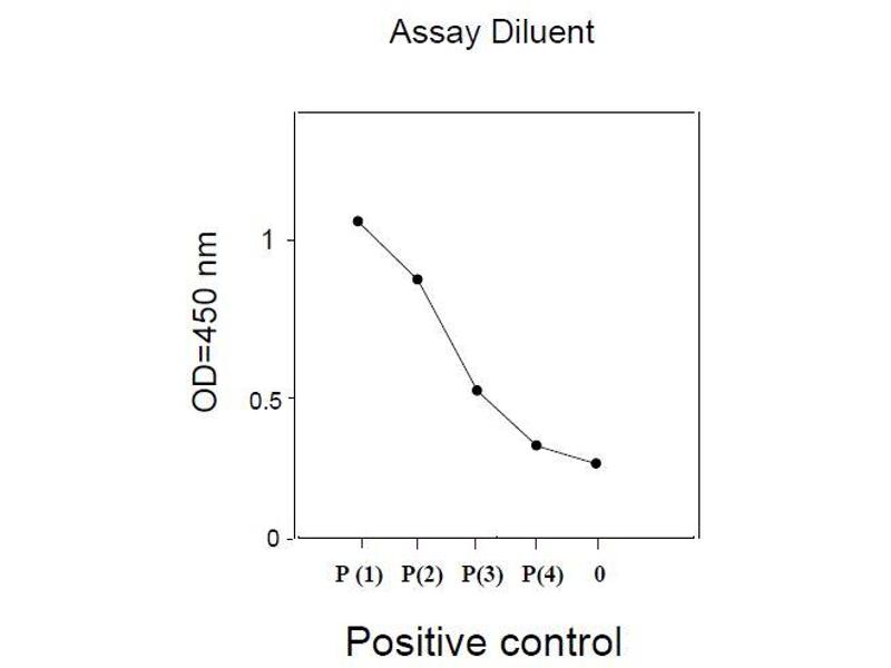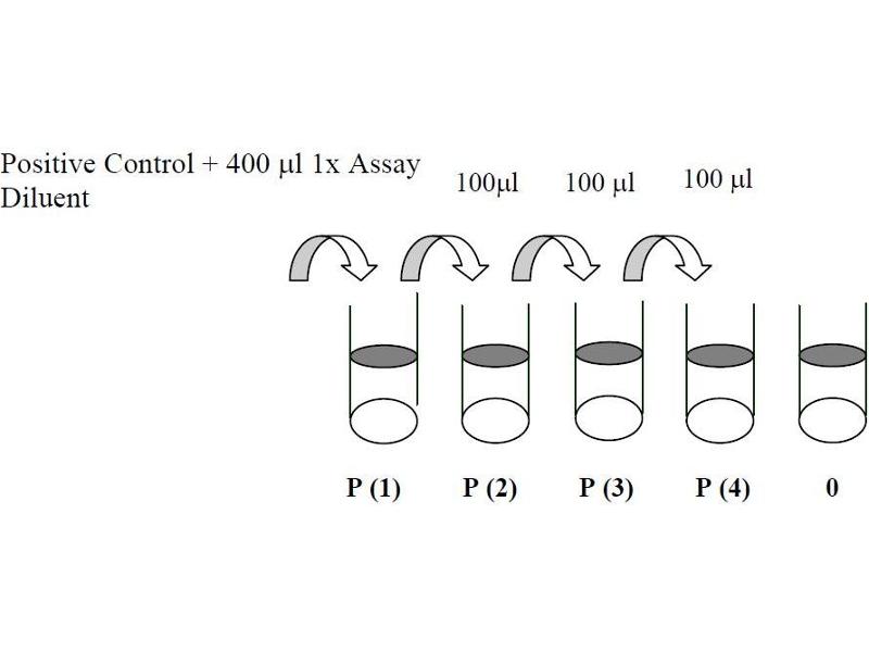 3. Preparation of Positive Control: Briefly spin the Positive Control vial of Item K. Add 400 µL 1x Assay Diluent (Item E, Assay Diluent should be diluted 5-fold with deionized or distilled water before use) into Item K vial to prepare P-1 (See i. Positive control of part IX.for a typical result). Dissolve the powder thoroughly by a gentle mix (it can be removed by centrifuge if any precipitate in the solution is found). Pipette 300 µL 1x Assay Diluent into each tube. Add 100 µL prepared Positive Control P-1 into a tube with 300 µL 1x Asaay Diluent to produce a dilution series (shown below). Mix each tube thoroughly before the next transfer. 1x Assay Diluent serves as the background. Human Phospho-EGFR (Tyr 1068) ELISA Kit Protocol 6