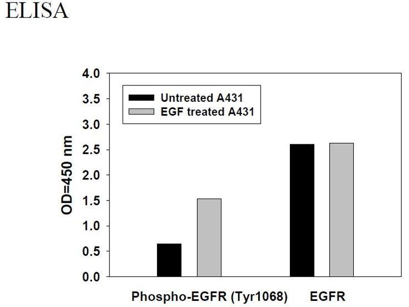 - Human Phospho-EGFR (Y1068) ELISA Kit. This assay semi-quantitatively measures phophorylated EGFR (Tyr1045) and Total EGFR in lysate samples.