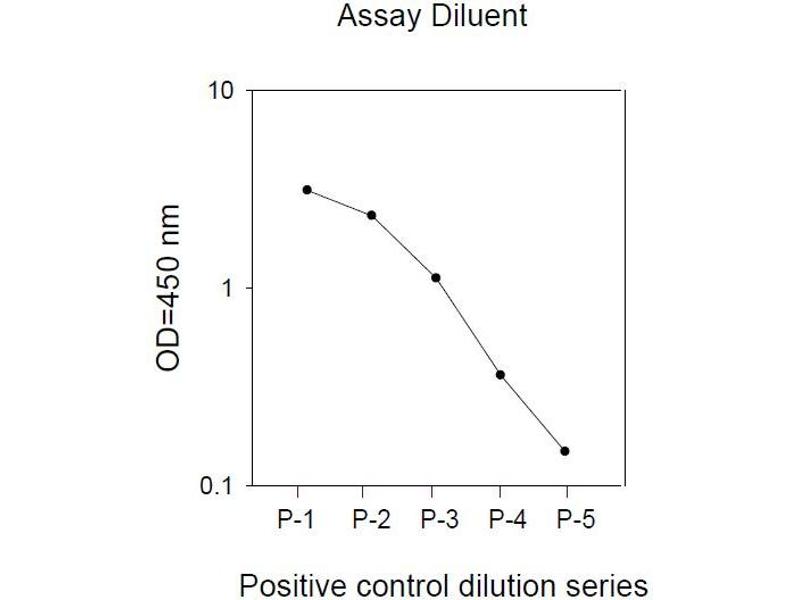 3. Preparation of Positive Control: Briefly spin the Positive Control vial of Item K. Add 800 µL 1x Assay Diluent (Item E, Assay Diluent should be diluted 5-fold with deionized or distilled water before use) into Item K vial to prepare a Positive Control (P-1) Solution (See i. Positive control of part IX.for a typical result). Dissolve the powder thoroughly by a gentle mix (it can be removed by centrifuge if any precipitate in the solution is found). Pipette 300 µL 1x Assay Diluent into each tube. Use the Positive Control (1) to produce a dilution series (shown below). Mix each tube thoroughly before the next transfer. 1x Assay Diluent serves as the background. Human Phospho-EGFR (Tyr 1086) ELISA Kit Protocol 6