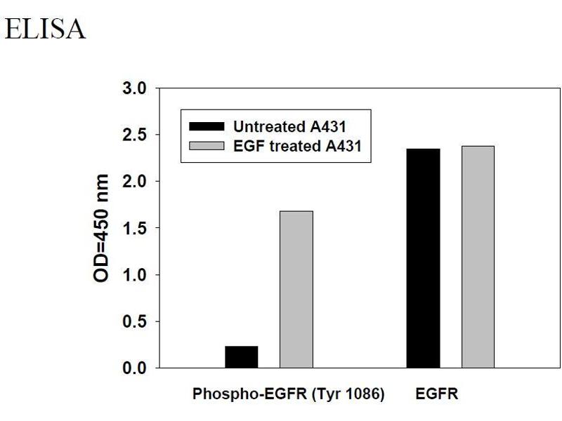 - Human Phospho-EGFR (Y1086) ELISA Kit. This assay semi-quantitatively measures phophorylated EGFR (Tyr1068) and Total EGFR in lysate samples.