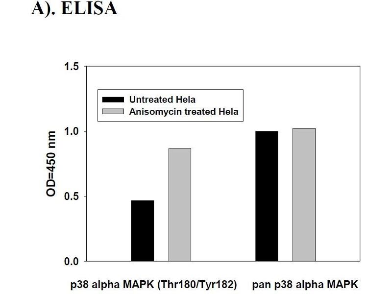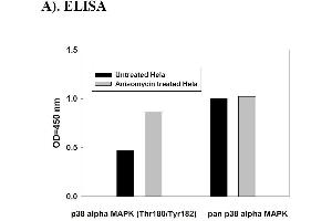 - Human/Mouse Phospho-p38 alpha (T180/Y182) ELISA Kit. This assay semi-quantitatively measures phophorylated p38 alpha (Thr180/Tyr182) in lysate samples.