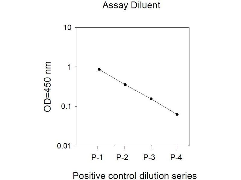3. Briefly spin the Positive Control vial of Item K. Add 400 µL 1x Assay Diluent (Item E, Assay Diluent should be diluted 5-fold with deionized or distilled water before use) into Item K vial to prepare a Positive Control (P-1) Solution. Dissolve the powder thoroughly by a gentle mix (it can be removed by centrifuge if any precipitate in the solution is found. See i. Positive Control Phospho-p38 alpha MAPK (Thr180/Tyr182) ELISA Kit Protocol 6 of part IX.for a typical result in page 9). Pipette 240 µL 1x Assay Diluent into each tube. Use the Positive Control (P-1) to produce a dilution series (shown below). Mix each tube thoroughly before the next transfer. 1x Assay Diluent serves as the background.