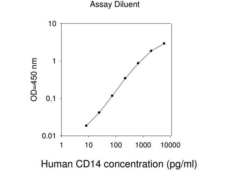Typical Data: These standard curves are for demonstration only. A standard curve must be run with each assay. Assay Diluent Human CD14 concentration (pg/mL) 1 10 100 1000 10000 O D =4 50 n m 0.01 0.1 1 10