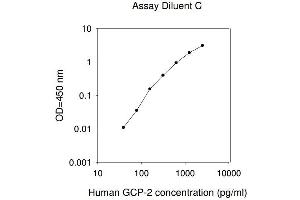 - The Human GCP-2 (Granulocyte Chemotatic Protein-2) ELISA (Enzyme-Linked Immunosorbent Assay) kit is an in vitro enzyme-linked immunosorbent assay for the quantitative measurement of human GCP-2 in serum, plasma, cell culture supernatants and urine. This assay employs an antibody specific for human GCP-2 coated on a 96-well plate. Standards and samples are pipetted into the wells and GCP-2 present in a sample is bound to the wells by the immobilized antibody. The wells are washed and biotinylated anti-human GCP-2 antibody is added. After washing away unbound biotinylated antibody, HRP-conjugated streptavidin is pipetted to the wells. The wells are again washed, a TMB substrate solution is added to the wells and color develops in proportion to the amount of GCP-2 bound. The Stop Solution changes the color from blue to yellow, and the intensity of the color is measured at 450 nm. Reproducibility: Intra-Assay: CV<10% Inter-Assay: CV<12%.