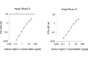 - The Human Siglec-9 ELISA (Enzyme-Linked Immunosorbent Assay) kit is an in vitro enzyme-linked immunosorbent assay for the quantitative measurement of human Siglec-9 in serum, plasma, cell culture supernatants and urine. This assay employs an antibody specific for human Siglec-9 coated on a 96-well plate. Standards and samples are pipetted into the wells and Siglec-9 present in a sample is bound to the wells by the immobilized antibody. The wells are washed and biotinylated anti-human Siglec-9 antibody is added. After washing away unbound biotinylated antibody, HRP-conjugated streptavidin is pipetted to the wells. The wells are again washed, a TMB substrate solution is added to the wells and color develops in proportion to the amount of Siglec-9 bound. The Stop Solution changes the color from blue to yellow, and the intensity of the color is measured at 450 nm. Reproducibility: Intra-Assay: CV<10% Inter-Assay: CV<12%.