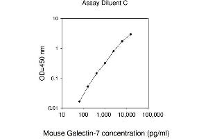 Recovery: Recovery was determined by spiking various levels of Galectin-7 into normal Mouse serum, plasma (heparin and citrate) and cell culture media. Mean recoveries are as follows: Sample Type Average % Recovery Range ( %) Serum 141.4 133-149 Plasma 107.3 77-135 Cell culture media 139.0 118-148