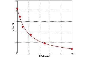 Prepare all Standards before starting assay procedure (Please read Reagents Preparation). It is recommended that all Standards and Samples be added in duplicate to the Microtiter Plate. 1. Secure the desired number of coated wells in the holder then add 50 µL of Standards or Samples to the appropriate well of the antibody pre-coated Microtiter Plate. 2. Add 50 μL of Conjugate to each well. Mix well. Complete mixing in this step is important. Cover and incubate for 1 hour at 37 °C. 3. Wash the Microtiter Plate using one of the specified methods indicated below: 4. Manual Washing: Remove incubation mixture by aspirating contents of the plate into a sink or proper waste container. Using a squirt bottle, fill each well completely with wash solution, then aspirate contents of the plate into a sink or proper waste container. Repeat this procedure four more times for a total of FIVE washes. After final wash, invert plate, and blot dry by hitting plate onto absorbent paper or paper towels until no moisture appears. Note: Hold the sides of the plate frame firmly hen washing the plate to assure that all strips remain securely in frame. 5. Automated Washing: Aspirate all wells, and then wash plate FIVE times using wash solution. Always adjust your washer to aspirate as much liquid as possible and set fill volume at 350 µL/well/wash (range: 350-400 µL). After final wash, invert plate, and blot dry by hitting plate onto absorbent paper or paper towels until no moisture appears. It is recommended that the washer be set for a soaking time of 10 seconds or shaking time of 5 seconds between washes. 6. Add 50 µL Substrate A to each well. 7.Add 50 µL Substrate B to each well. Cover and incubate for 15 minutes at 20-25 °C. (avoid sunlight) 8. Add 50 µL of Stop Solution to each well. Mix well. 9. Read the Optical Density (O.D.) at 450 nm using a microtiter plate reader immediately.