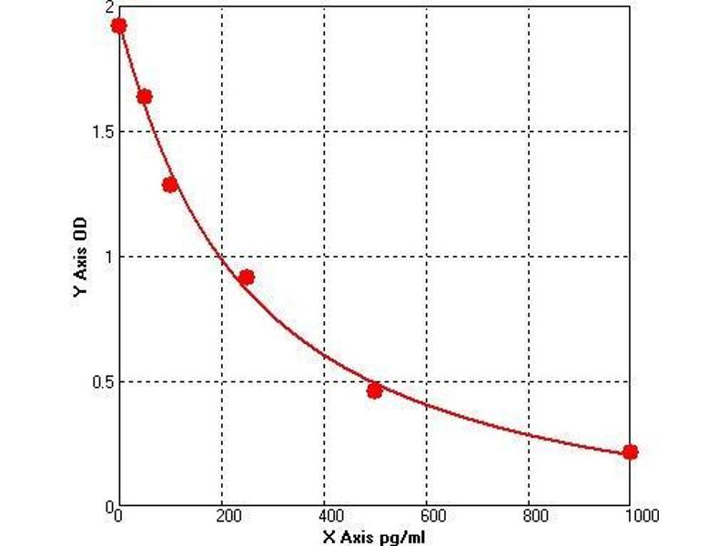 Prepare all Standards before starting assay procedure (Please read Reagents Preparation). It is recommended that all Standards and Samples be added in duplicate to the Microtiter Plate. 1. Secure the desired number of coated wells in the holder then add 50 µL of Standards or Samples to the appropriate well of the antibody pre-coated Microtiter Plate. 2. Add 100 µL of Conjugate to each well. Mix well. Complete mixing in this step is important. Cover and incubate for 1 hour at 37 °C. 3. Wash the Microtiter Plate using one of the specified methods indicated below: 4. Manual Washing: Remove incubation mixture by aspirating contents of the plate into a sink or proper waste container. Using a squirt bottle, fill each well completely with wash solution, then aspirate contents of the plate into a sink or proper waste container. Repeat this procedure four more times for a total of FIVE washes. After final wash, invert plate, and blot dry by hitting plate onto absorbent paper or paper towels until no moisture appears. Note: Hold the sides of the plate frame firmly hen washing the plate to assure that all strips remain securely in frame. 5. Automated Washing: Aspirate all wells, and then wash plate FIVE times using wash solution. Always adjust your washer to aspirate as much liquid as possible and set fill volume at 350 µL/well/wash (range: 350-400 µL). After final wash, invert plate, and blot dry by hitting plate onto absorbent paper or paper towels until no moisture appears. It is recommended that the washer be set for a soaking time of 10 seconds or shaking time of 5 seconds between washes. 6. Add 50 µL Substrate A to each well. 7.Add 50 µL Substrate B to each well. Cover and incubate for 15 minutes at 20-25 °C. (avoid sunlight) 8. Add 50 µL of Stop Solution to each well. Mix well. 9. Read the Optical Density (O.D.) at 450 nm using a microtiter plate reader immediately.