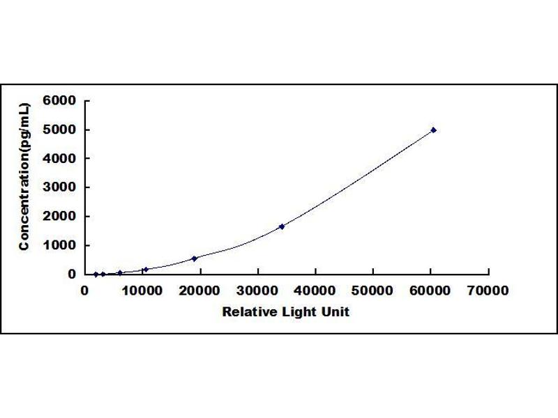 In order to make the calculation easier, we plot the RLU value of the standard (X-axis) against the known concentration of the standard (Y-axis), although concentration is indeed the independent variable while RLU value is the dependent variable. Further, in this part, in order to help the customer perform the assay more visual, we provide the customer with the raw data (not the log of data). However, plotting log of the data to construct the curve will be recommended. The RLU values of the standard curve may vary according to the conditions of assay performance (e.g. operator, pipetting technique, washing technique or temperature effects). This curve is provided for demonstration only. The customers should establish their own standard curve for each test conducted. -