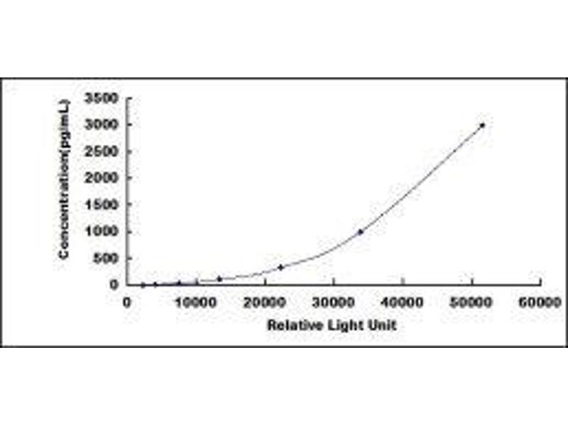 In order to make the calculation easier, we plot the RLU value of the standard (X-axis) against the known concentration of the standard (Y-axis), although concentration is indeed the independent variable while RLU value is the dependent variable. Further, in this part, in order to help the customer perform the assay more visual, we provide the customer with the raw data (not the log of data). However, plotting log of the data to construct the curve will be recommended. The RLU values of the standard curve may vary according to the conditions of assay performance (e.g. operator, pipetting technique, washing technique or temperature effects). This curve is provided for demonstration only. The customers should establish their own standard curve for each test conducted. -