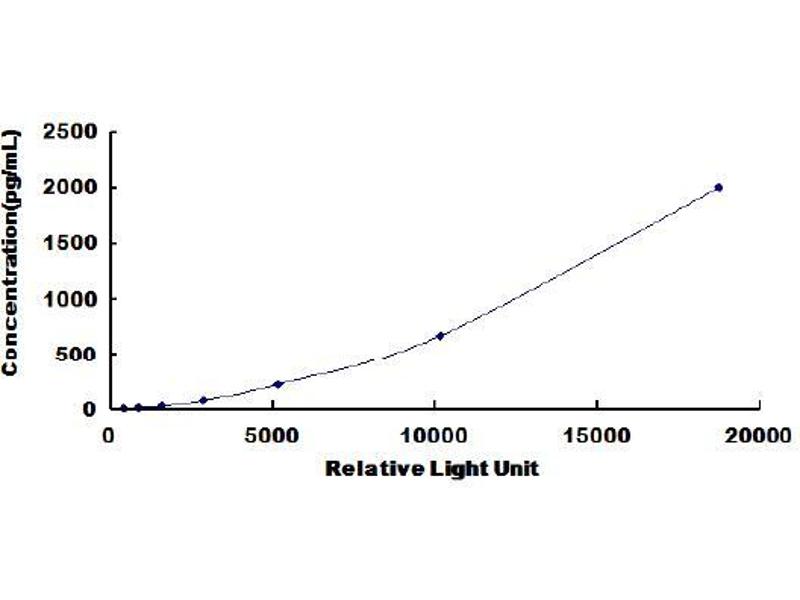In order to make the calculation easier, we plot the RLU value of the standard (X-axis) against the known concentration of the standard (Y-axis), although concentration is indeed the independent variable while RLU value is the dependent variable. Further, in this part, in order to help the customer perform the assay more visual, we provide the customer with the raw data (not the log of data). However, plotting log of the data to construct the curve will be recommended. The RLU values of the standard curve may vary according to the conditions of assay performance (e.g. operator, pipetting technique, washing technique or temperature effects). This curve is provided for demonstration only. The customers should establish their own standard curve for each test conducted. -