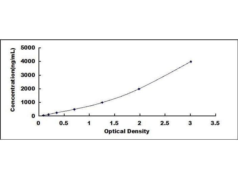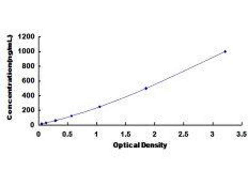 - Standard - Reconstitute the Standard with 1.0 mL of Standard Diluent, keep for 10 minutes at room temperature, shake gently (not to foam). The concentration of the standard in the stock solution is 16,000 ng/mL. Firstly dilute the stock solution to 4,000 ng/mL and the diluted standard serves as the highest standard (4,000 ng/mL). Then prepare 7 tubes containing 0.5 mL Standard Diluent and use the diluted standard to produce a double dilution series. Mix each tube thoroughly before the next transfer. Set up 7 points of diluted standard such as 4,000 ng/mL, 2,000 ng/mL, 1,000 ng/mL, 500 ng/mL, 250 ng/mL, 125 ng/mL, 62.5 ng/mL, and the last microcentrifuge tube with Standard Diluent is the blank as 0 ng/mL.