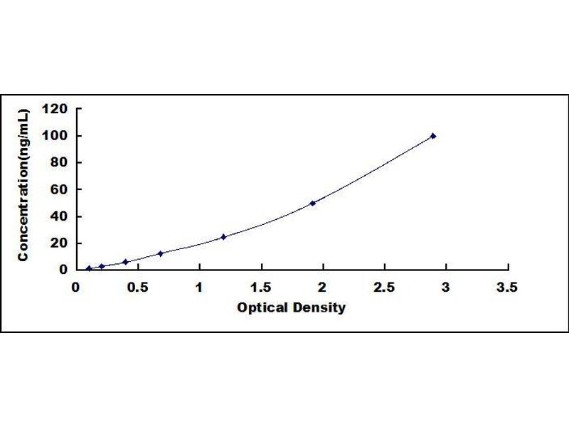 2. Standard - Reconstitute the Standard with 0.5 mL of Standard Diluent, keep for 10 minutes at room temperature, shake gently (not to foam). The concentration of the standard in the stock solution is 100 ng/mL. Prepare 7 tubes containing 0.25 mL Standard Diluent and produce a double dilution series. Mix each tube thoroughly before the next transfer. Set up 7 points of diluted standard such as 100 ng/mL, 50 ng/mL, 25 ng/mL, 12.5 ng/mL, 6.25 ng/mL, 3.12 ng/mL, 1.56 ng/mL, and the last microcentrifuge tube with Standard Diluent is the blank as 0 ng/mL.